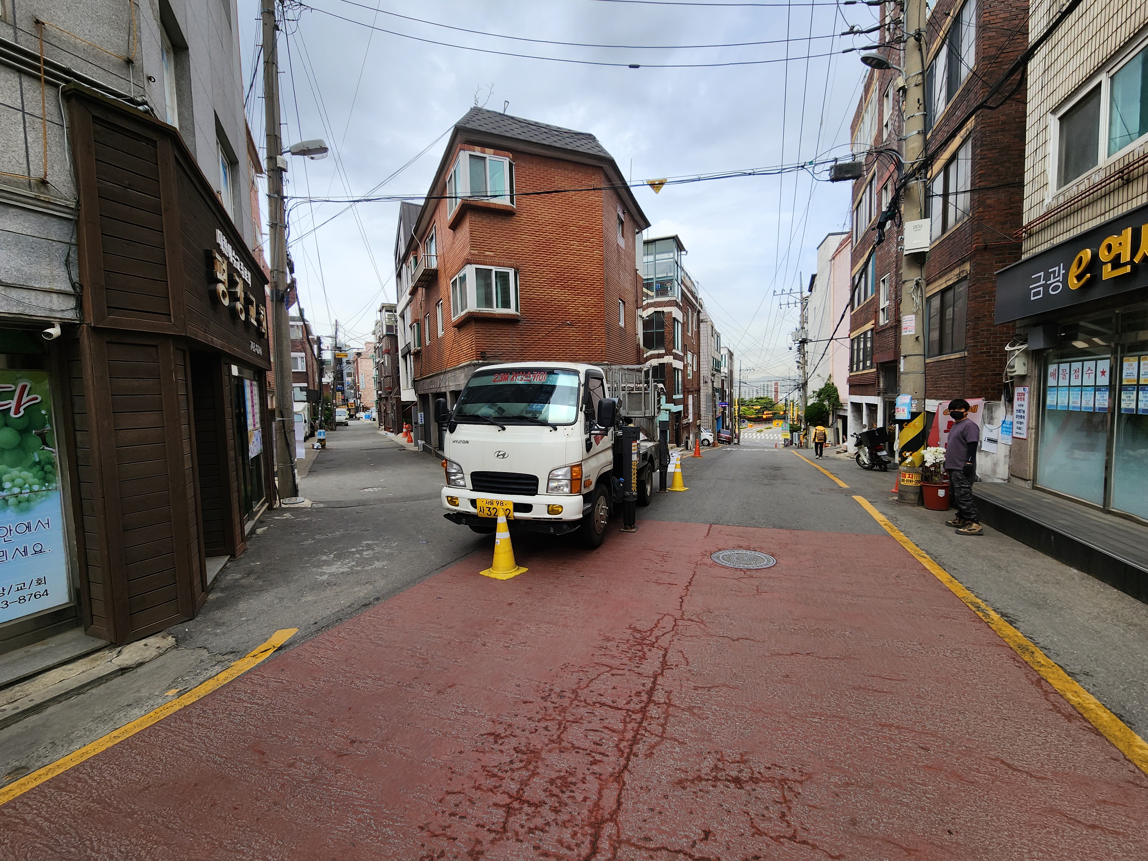 있어서 스카이차가 필수로 필요한 현장입니다.
